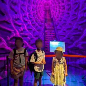太陽の塔🌞 2025/09/29 きずな・リアン 別の枠でしたが同じ日に万博公園の太陽の塔見学へ🚙🍂 太陽の塔の中は岡本太郎ワールド!! 独特の世界観に大人も子供も啞然😲 もちろん『怖い怖い』と進むのをためらう子たちもいました(笑) 長い階段を上りながら見て回ると色々な生き物がいるので 『先生みて!あそこにマンモス!恐竜がいる!』などなど・・ みんなたくさんの生き物を見つけていました👀❕❕ なかなか行くこともないので いい経験になりました☺✿