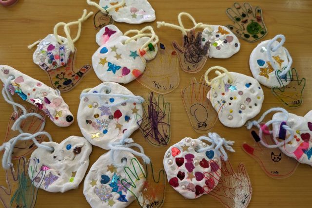 1号館の6月の制作は紙粘土とプラバンでキーホルダーを作りました✂ 紙粘土をこねて好きな